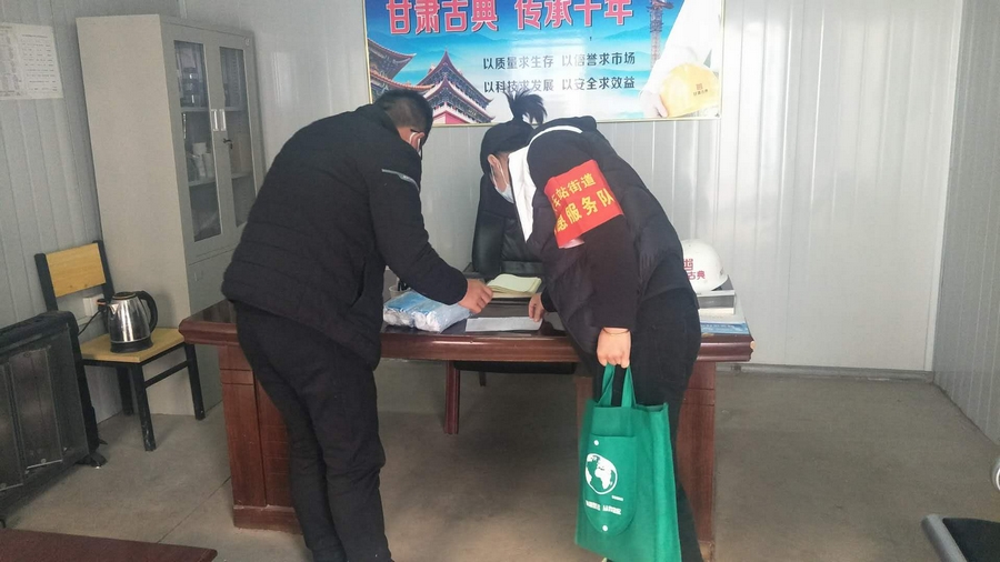 甘肃古典建筑有限公司在红二村社区指导下,加强疫情防控专项工作,保障疫情防控期间建筑工地复工及建筑工地从业人员的生命安全和身体。一是工地门卫继续做好工地人员进场登记及体温监测工作,严禁外来人员进入施工现场,对到岗人员做好身体状况调查及体温监测等工作;二是避免施工人员在工作时间段在宿舍区聚集,引导人与人之间尽量保持1.5米以上距离;三是减少不必要会议;四是工地加强对生活区宿舍、食堂的管理,宿舍尽量单人居住,饭堂不能堂食,人员要做到分餐,并且不能集聚在办公室或宿舍就餐,以确保工地人员的人身安全。特别要做好新工人进场教育、现场实名制登记及现场排查等工作。