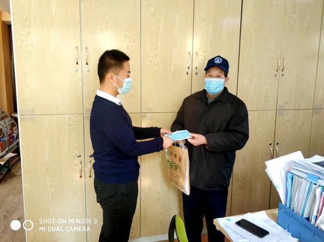 社区的困难老党员来社区交党费,看到他还戴着自己黑色的旧口罩,我立即将街道发给自己用的两个口罩送给老人,希望他们做好个人防护。