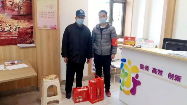 我正在社区大厅给居民办理事务,突然后面有人拍了我一下,转身一看原来是早上我送给他口罩的那位老党员,他提了一箱八宝粥、一箱加多宝,他说:“我是一名老党员,疫情那么大,我年纪大了,做不了什么,看到社区工作人员最近这么