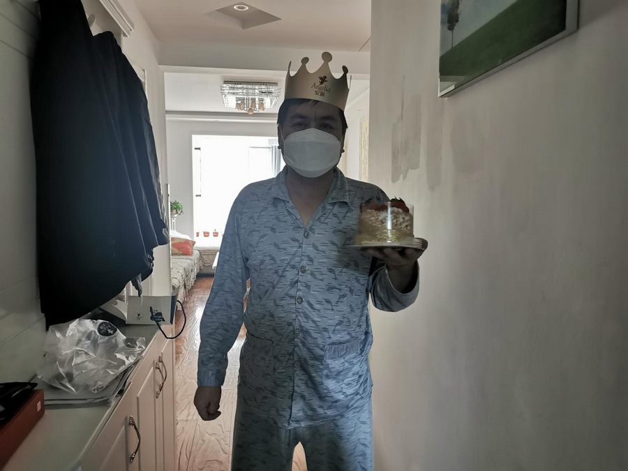 家住在雅轩三号楼一单元的徐先生,前两天刚从北京回来,主动要求隔离,对徐先生来说,今天是个特殊的日子,社区工作人员细心的发现今天是刘先生的生日,特意为徐先生准备了生日蛋糕并送到他家里。