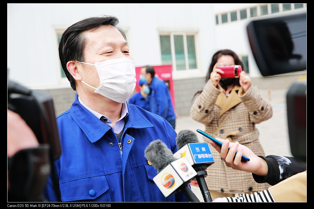 兰州网络大V代表雷亚徽在慰问现场接受媒体记者采访