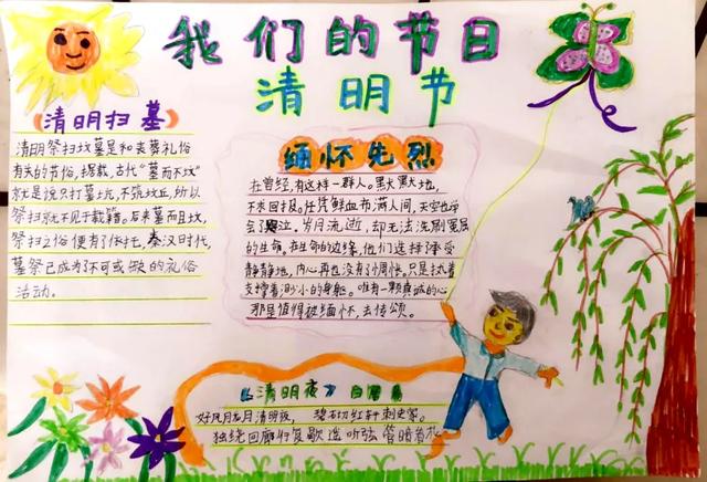 因为疫情期间的特殊性,社区创新活动形式,通过线上活动的方式,开展了“我们的节日 清明节”诗歌朗诵暨手抄报比赛。有的孩子们通过一段段声情并茂的朗诵诗歌,缅怀先烈;有的搜集有关清明节的历史起源、节日习俗、历史名人、诗词歌画、特色饮食等方面的知识,创作的手抄报作品图文并茂,富有时代性、知识性、趣味性和想象力。