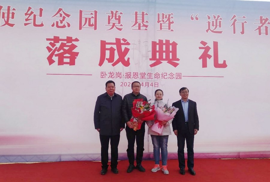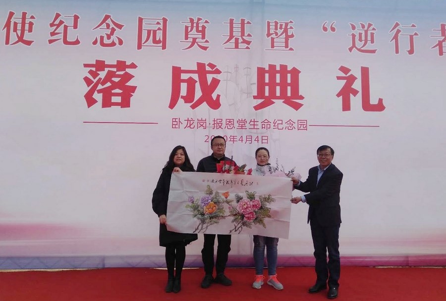 在白衣天使纪念园区,援鄂医疗队代表、省人民医院党委书记李兴勇、中国卫生法学会副秘书长解放分别讲话,深切表达向白衣天使的崇高敬意,并誓言要继承烈士们的遗志,发扬优良革命传统,不忘初心,牢记使命,在以习近平为核心的党中央领导下,奋勇前行,夺取抗疫及经济建设的伟大胜利!宗荣董事长还代表联办方郑重宣布:将为全国的抗疫烈士在白衣天使纪念园免费提供墓地及服务,为其父母提供极为优惠的殡葬服务,以此来表达甘肃人民对抗疫烈士的无比崇敬和永恒的纪念!絲路云梦文化公司还向援鄂医疗队员、卧龙岗公墓赠送了名家书画。