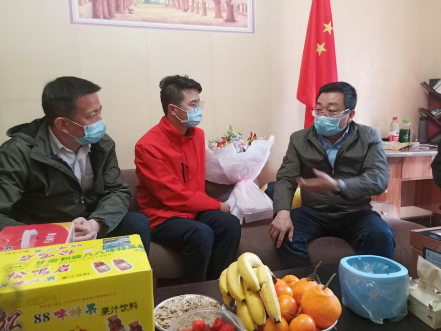 王文博于3月25日返回兰州,在街道统一安排下入住定点酒店进行隔离。为期14天的隔离观察期结束后,4月8日,皋兰路街道党工委书记李普哲、办事处主任常莉陪同兰州市文明办主任崔峰巍一行前往王文博家中进行慰问。