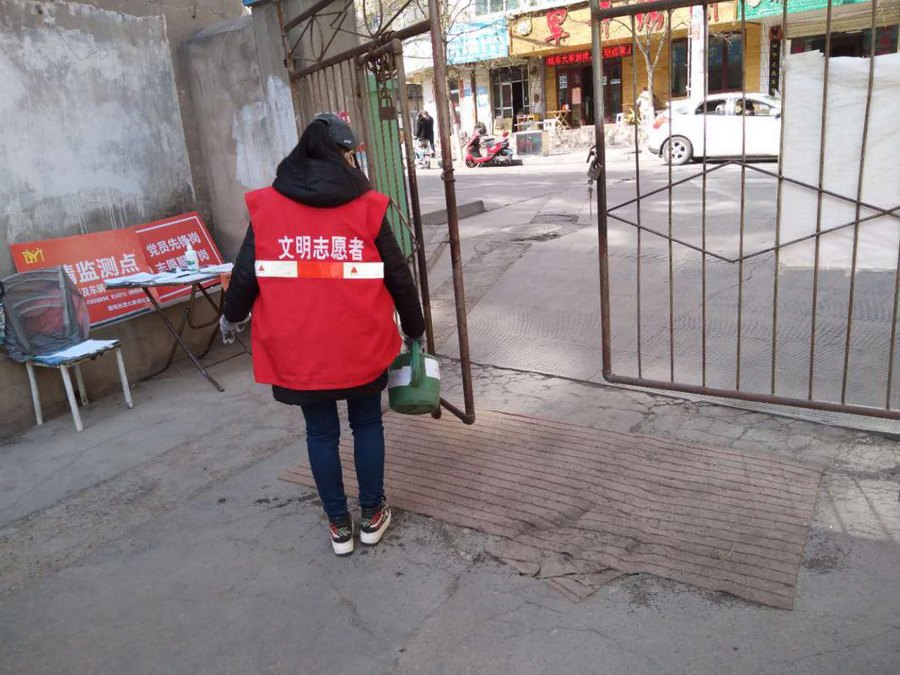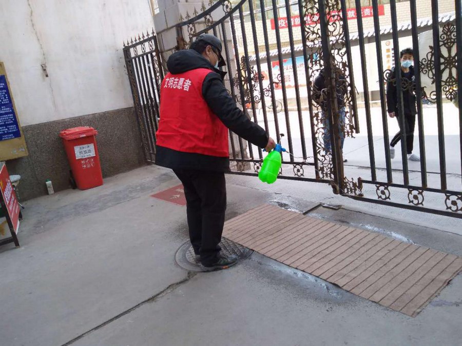 南河疏浚办在职党员志愿者在长青家属院卡口点消杀