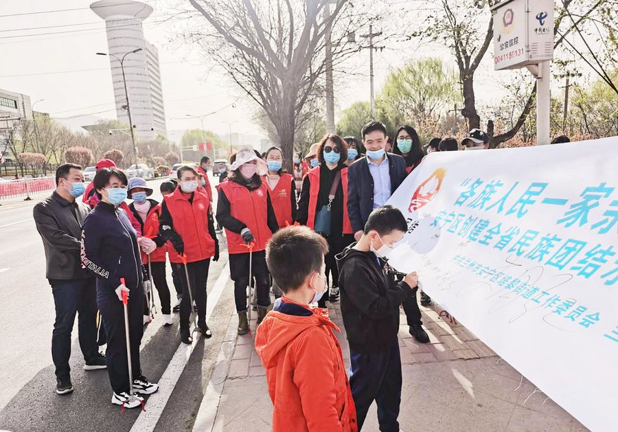 为深入推进创建全省民族团结进步示范区工作,把民族团结进步创建与生态文明建设有机结合起来,进一步加强辖区黄河沿岸环境保护力度,增强全区各族人民建设生态文明的主人翁意识。按照区委、区政府的安排部署,4月11日上午,安宁区创建全省民族团结进步示范区领导小组办公室组织开展“各族人民一家亲·保护黄河我先行”保护母亲河签名活动,并沿黄河风情线安宁段捡拾垃圾、清理枯枝败叶、擦洗公共设施。全区8个街道紧扣活动主题设立了分会场,同时,联合执法,整治河洪道内的乱占、乱建、乱堆、乱采等现象。全区各级各部门领导干部、党员志愿者和辖区少数民族群众代表参加了此次活动。