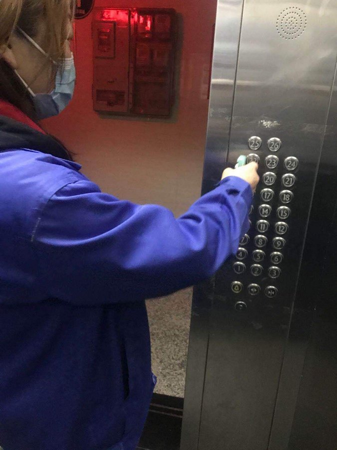 从进入疫情防控期开始,辖区各物业公司全力配合街道、社区疫情防控相关安排部署,积极发动广大业主主动做好自身防护的同时,各物业小区工作人员每天的持续、不间断的对楼院、楼道、电梯间、健身器材等公共区域的全面消杀,并建立完善的记录台账,同时对所有进入小区的人员逐一进行测温。他们本着物业服务人的责任心和服务的初心,不折不扣的做好每一项防疫工作,换取小区业主的安心,为街道、社区防疫工作做好第一道防护线。
