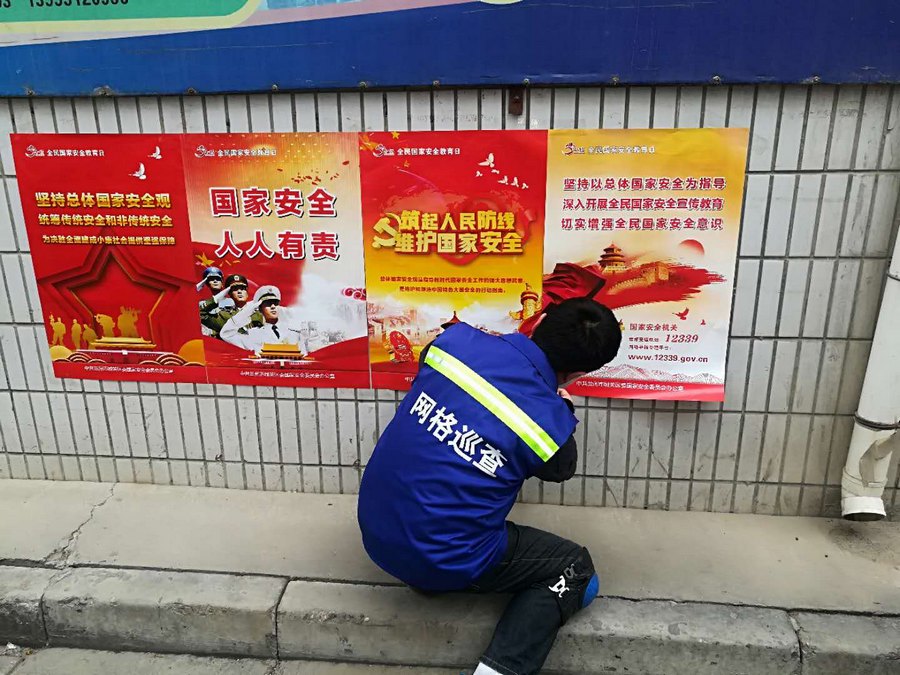 “网格蓝”、“志愿红”联手助推宣传教育。自宣传活动部署开展以来,街道、各(村)社区积极组织网格员、志愿者重点围绕国家安全相关的法律法规和各种非传统安全知识,依托背街小巷、小区楼院、单位等疫情防控值守点,在避免人员聚集,落细落实疫情防控措施的前提下,通过在辖区市场、单位、小区楼院张贴宣传海报,利用商业广场和主干道等人流密集区域的户外LED显示屏、宣传栏、文化墙、公示栏等设施宣传国家安全法律法规,解读习近平总书记关于国家安全的重要论述和总体国家安全观,播放国家安全教育宣传短视频。同时与创建国家文明城市结合起来,通过入户讲解、微博、移动音响、小喇叭、悬挂横幅等多种方式营造宣传氛围,激发广大辖区群众爱国热情和维护国家安全意识,增强国家安全教育的渗透力和感染力。