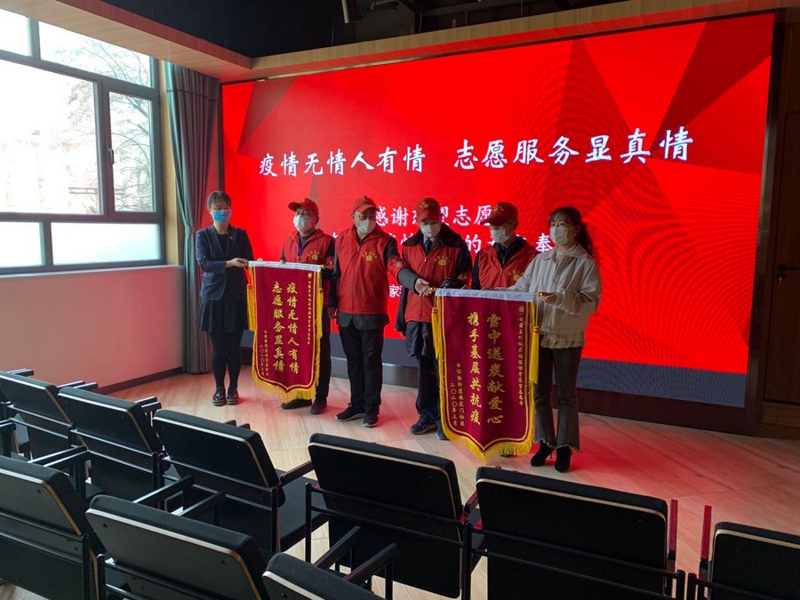 为表达对东望志愿团队诚挚的谢意和由衷的敬意,安定门社区联合甘家巷社区将两面写有“疫情无情人有情,志愿服务显真情”、“雪中送炭献爱心,携手基层共抗疫”的锦旗赠予东望志愿者团队。志愿者们在接到锦旗后表示他们只是尽己所能做了平凡的事,没什么大不了的,他们会始终坚守,让这份“平凡的事业”继续。