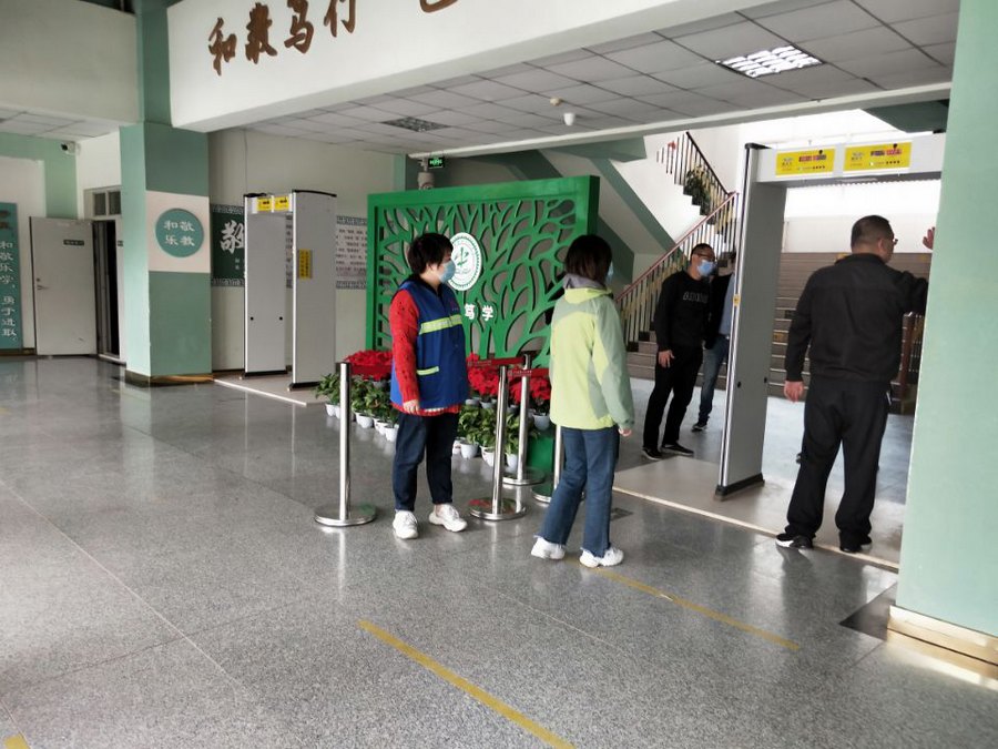 在五十二中校门口,可以看到值班老师正在耐心劝导家长们自觉遵守文明接送规定,提醒孩子们有序地入校,不扎堆、不聚集。在校内,设置体温监测点,能够快速检测到师生体温并清楚显示。同时,加强校内外重点场所和重点部位的清洁消毒,强化教职员工和学生个人防护与消毒等防控知识宣传和指导。用实际行动确保了孩子们在校期间安全有序,为学生们学习成长创造良好的环境。