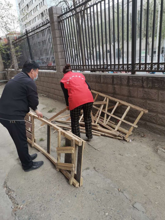 4月18日,为使居民的居住环境更加整洁、卫生,渭源路街道新时代文明践行志愿服务大队在辖区开展环境卫生整治活动。