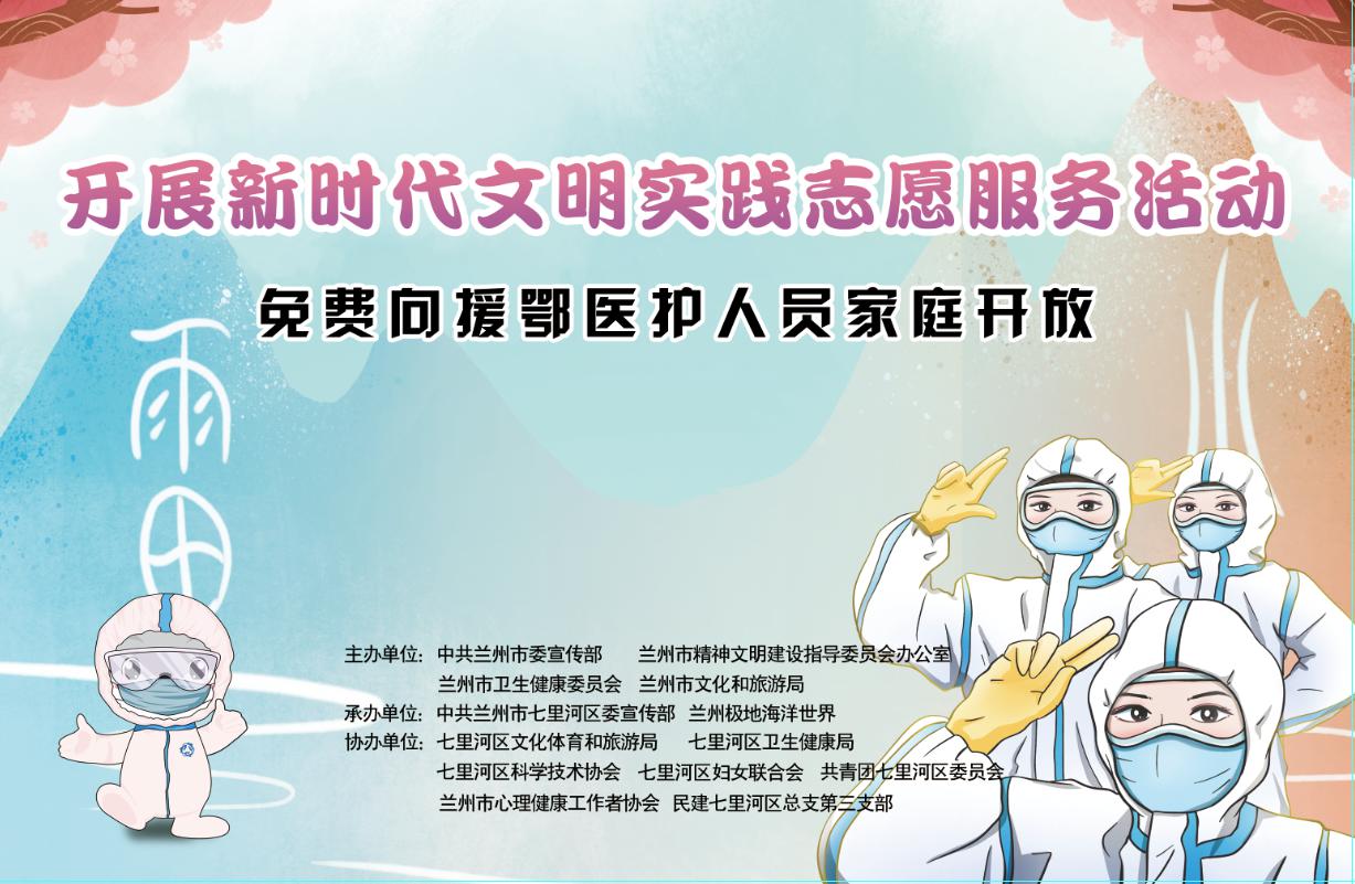 近日,由中共兰州市委宣传部、兰州市精神文明建设指导委员会办公室、兰州市卫生健康委员会、兰州市文化和旅游局主办,中共兰州市七里河区委宣传部、兰州极地海洋世界承办,兰州市心理健康工作者协会、民建七里河三支部等单位协办的“致敬最美逆行者——开展新时代文明实践志愿服务活动暨免费向援助湖北医护人员家庭开放活动”在兰州极地海洋世界举行,活动中为全省796名援助湖北医护人员及家庭送出终身有效的英雄卡 。