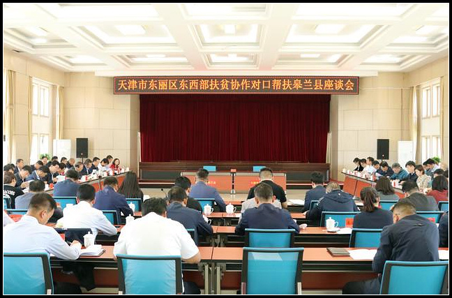 实地走访调研后,召开了天津市东丽区东西部扶贫协作对口帮扶皋兰县座谈会。皋兰县四大家主要领导、分管领导,各镇党委书记、县属有关部门主要负责人和相关行政村主要负责人参加了会议。