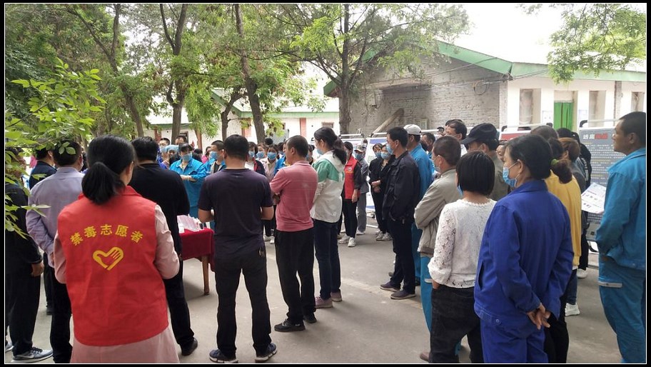 在辖区内的企业清真明胶厂禁毒志愿者为企业职工群众发放通俗易懂、图文并茂的禁毒宣传资料。禁毒委领导详细为职工讲解毒品的种类、吸食毒品的危害以及和禁毒相关的法律法规,并在醒目位置悬挂禁毒标语、摆放宣传展板、毒品仿真模型,引导其辨清毒品种类和毒品的危害等。同时,禁毒委领导还用一个个与毒品相关违法犯罪的案例警醒企业员工,教育企业员工要谨慎交朋友、不要进入治安复杂的场所,提高对诱惑的警惕性,不轻易和陌生人搭讪,不接受陌生人提供的香烟和饮料及食品等;对工厂内的盐酸、硫酸等易制毒化学品要正确合规使用,做到不私藏、不外流,发现可能涉及毒品犯罪的行为要积极举报。