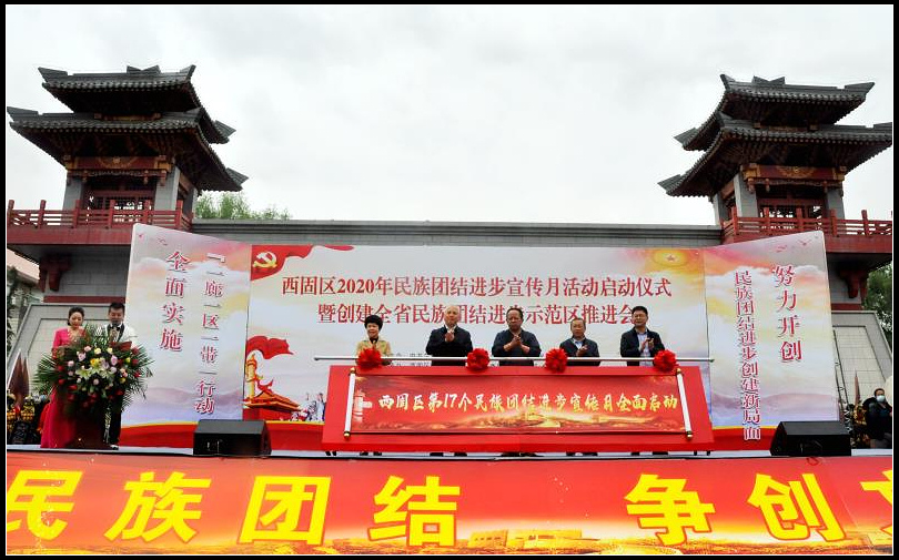 5月20日,兰州市西固区在金城公园广场举行2020年民族团结进步宣传月活动启动仪式暨创建全省民族团结进步示范区推进会。甘肃省民委民族团结进步创建处处长措钦才让,兰州市民委副主任陈学贵出席启动仪式。西固区委书记雒泽民在启动仪式上致辞,区人大常委会主任王延风、区政协主席徐春花及区四大家有关领导参加活动。