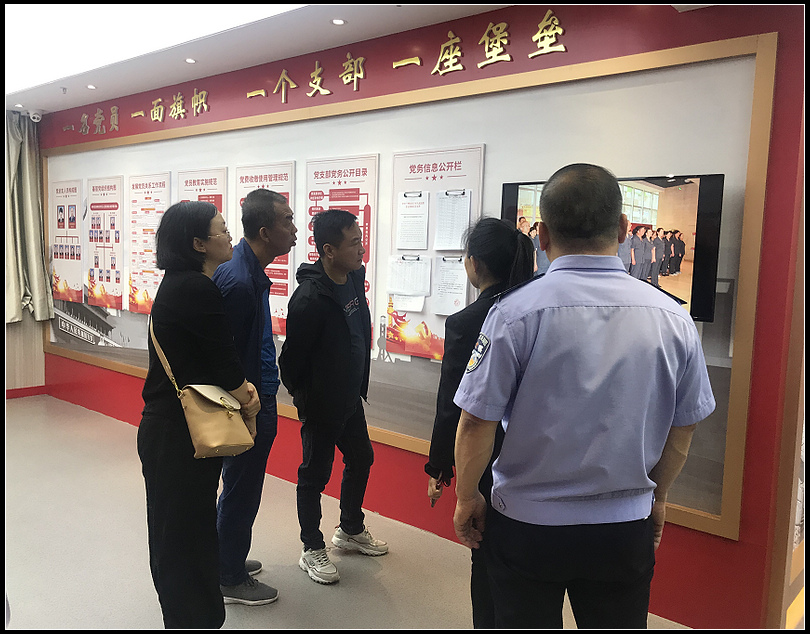 观摩过程中,南门社区工作人员在人民法院党总支副书记姚卫兴同志的带领下,参观了安宁区人民法院的党建阵地,介绍了党建工作亮点、特色服务项目以及下步工作计划。观摩人员以实地查看和查阅资料的方式,重点对“三会一课”、党员活动日、党费收缴等基本制度落实情况、特色服务项目建设、共驻共建、社区“两委”班子建设等重点工作开展情况进行观摩查阅。