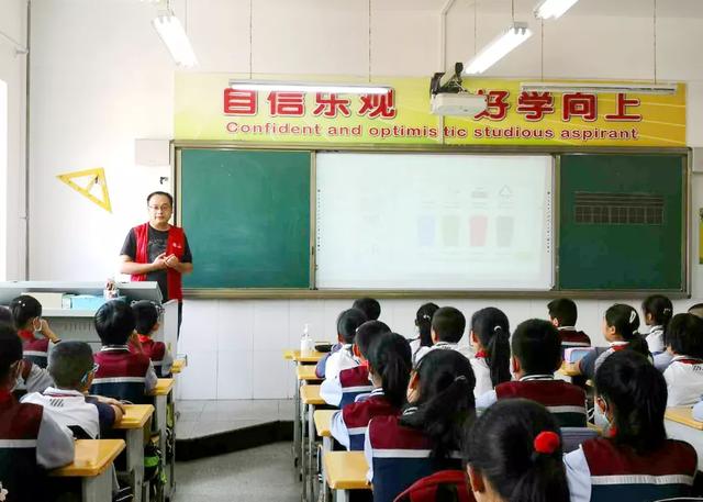 志愿者用简单易懂的语言和数据及垃圾分类相关的视频,为同学们进行垃圾分类的宣传讲解,并详细介绍了可回收垃圾、有害垃圾、厨余垃圾、其他垃圾等四种垃圾不同的处理方式。同学们听得很认真,活动中,志愿者对同学们进行提问,同学们纷纷举手抢答,现场气氛热烈。从同学们热烈举手的场面来看孩子们都对垃圾分类很关注,也有相当程度的了解。