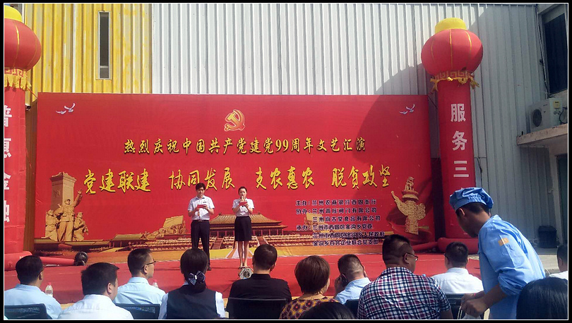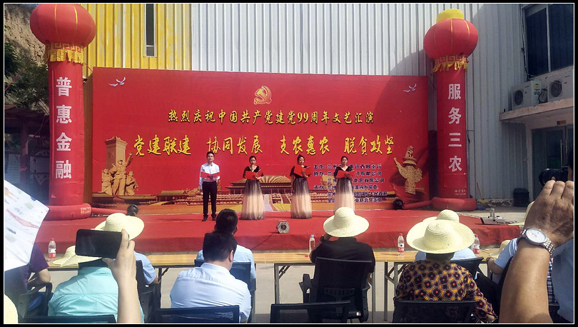 本网西固讯(牛占虎 赵小春报道)6月29日,为庆祝中国共产党成立99周年,西固区金融办、西固区民政局、西固区农业农村局、金沟乡、兰州农商银行西固支行、兰州高压阀门有限公司、金沟乡百合企业联合党支部共同举行主题为“党建联建、协同发展、支农惠农、脱贫攻坚”的庆“七一”文艺演出,各单位党员欢聚一堂,庆祝自己的节日。