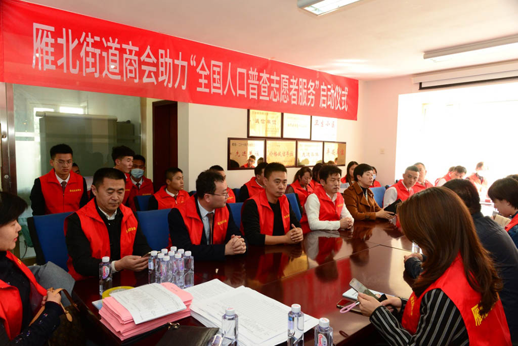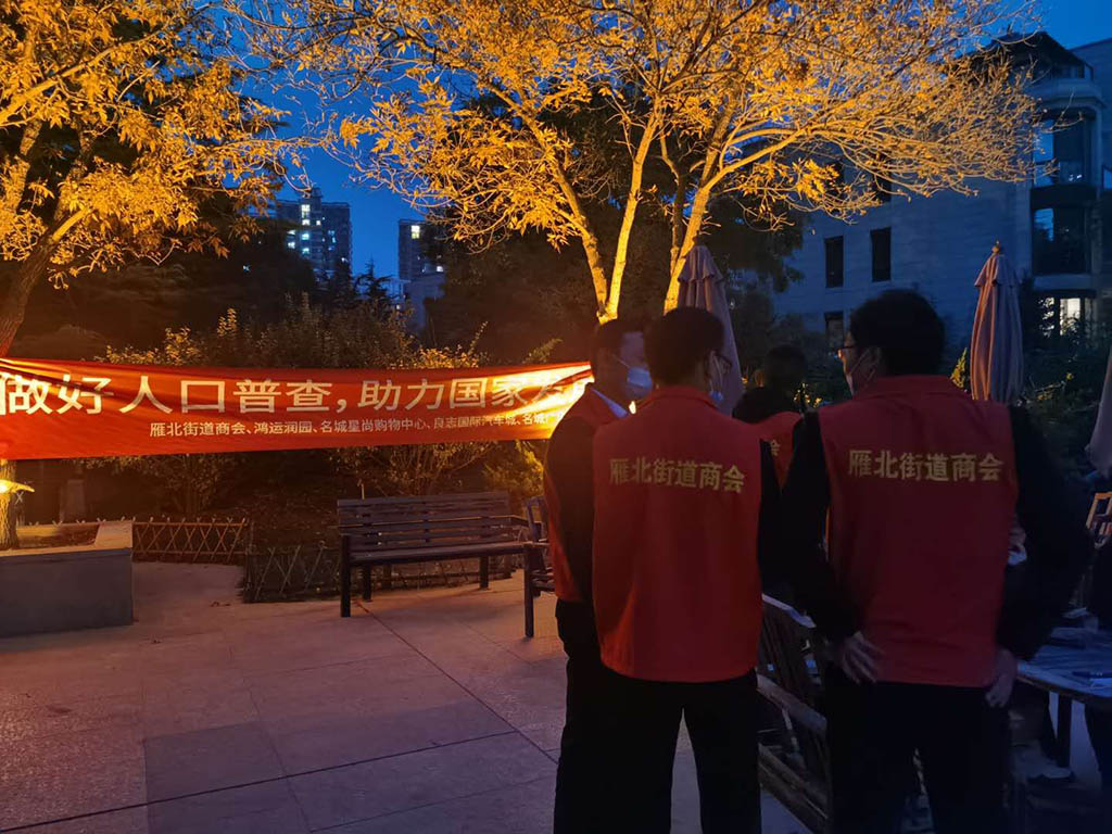 十年人普,十年之约。人口普查是全面掌握全国人口基本情况、研究制定人口政策和规划经济社会发展的重要依据,这项工作意义深远、任务艰巨。街道辖区近300个普查小区8万余人,继疫情防控、文明创建之后,“白+黑”模式再一次成为基层干部的常态,商会单位的加入,有效缓解了普查员紧缺的问题。“发出倡议、召开会议、订做马甲、落实安排…”短短3天时间,商会便组织起五六十余人加入人普大军中,一个个身穿印有“雁北街道商会”马甲的志愿者,穿梭于居民楼宇之间:“您好,打扰一下,我们是雁北街道的人口普查员,现在正开展第七次全国人口普查工作…”,此刻,他们不仅仅代表雁北街道商会,更是代表代表雁北街道。