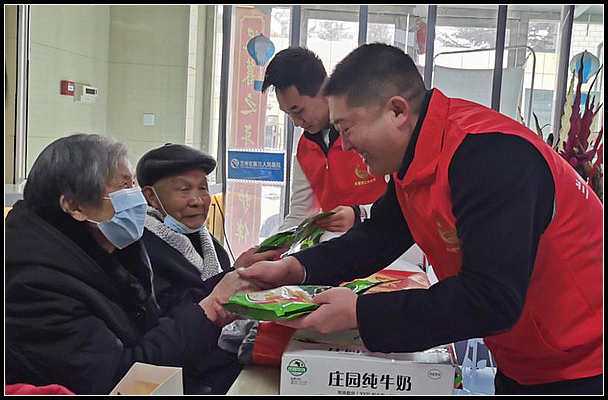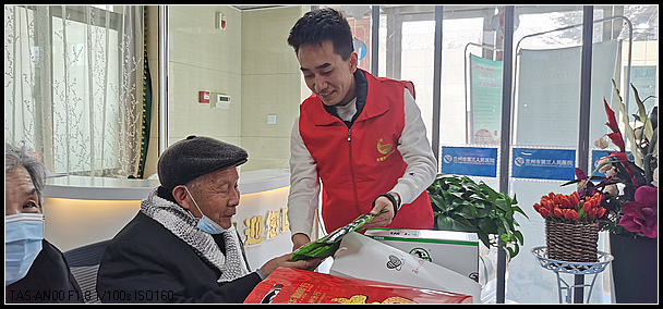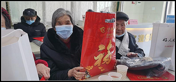 中国甘肃在线兰州讯(赵小春报道)2月2日,共青团兰州市委、兰州市青年志愿者协会携手爱心企业兰州家家直营农副产品有限公司来到位于兰州市第三人民医院的兰州市老年护理院,走访慰问了这里的26名贫苦老人和困难职工,为他们带来了牛奶、油茶等价值2.6万元的礼品,提前祝他们春节快乐、身体健康!