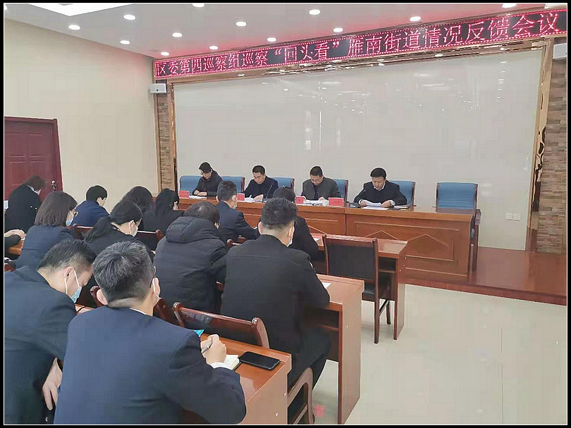 中国甘肃在线兰州讯 近期区委第四巡察组在雁南街道五楼会议室召开巡察雁南街道情况反馈会议,会议由雁南街道党工委副书记、办事处主任王戎江主持,区纪委副书记、区监委副主任郎永恒、区委第四巡察组组长王晓刚、区委第四巡察组副组长瞿丽君、区委第四巡察组联络员辛艳艳,雁南街道领导班子成员、各中心主任、全体干部职工、各社区书记、各村社区书记及“两委”班子成员等共计70余人参加会议。