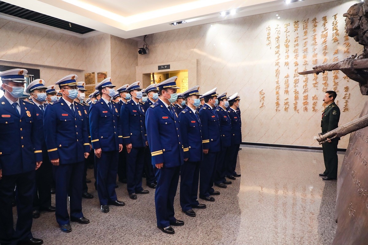 党庆文作了讲话,他指出:全市消防指战员要继承和发扬革命先烈前仆后继、不怕牺牲的精神,自觉把政治坚定、对党忠诚铭刻在灵魂中,熔铸到血脉里,不忘初心、继续前行,永远做党和人民的忠诚卫士。一要始终做到坚定信念、永葆本色。从革命先烈、英雄人物和先进模范的英勇事迹中感悟精神信仰,切实把红色基因融入指战员的血脉,永葆共产党人的精神血脉。二要始终做到牢记宗旨、一心为民。始终把人民放在心中最高位置,切实解决指战员和人民群众急、难、愁、盼的实际问题,不断增强人民群众获得感、幸福感、安全感。三要始终做到真抓实干、奋勇争先。发扬真抓实干的优良作风,把党史学习教育成效转化为奋进动力和工作实绩,不断续写全市消防救援队伍“火焰蓝”救民于水火、助民于危难、给人民以力量的精彩篇章。