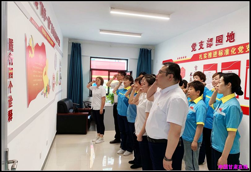 在党支部活动室,面对鲜红的党旗,全体党员重温入党誓词,坚守入党初心,再一次接受心灵的洗礼,进一步坚定立场信念和初心使命。