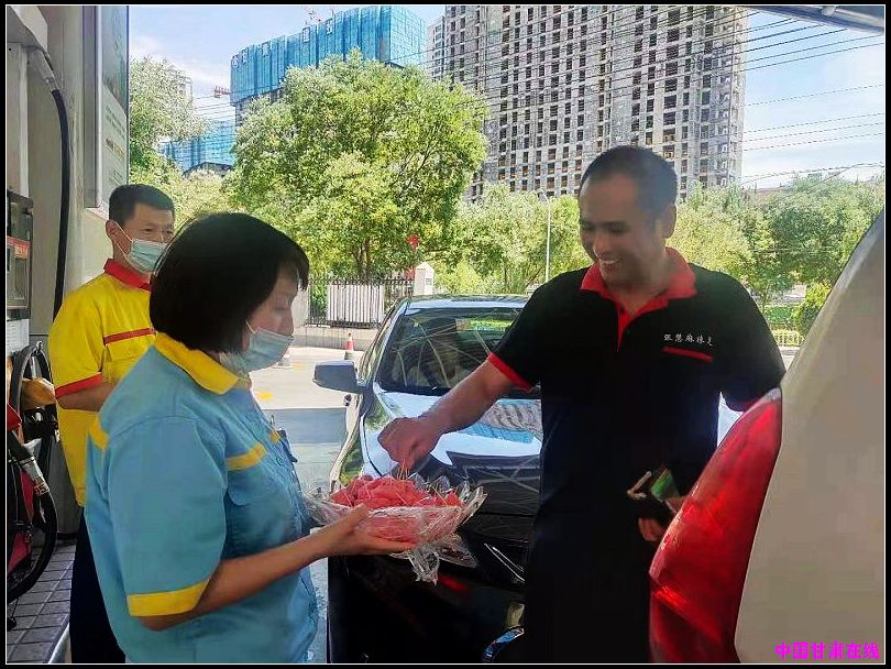 近期,兰州市区持续高温,“炙烤”模式开启,兰州分公司邮区中心加油站在做好员工防暑降温工作的同时,把为客户送清凉活动作为服务提升的关键点,提前着手购置绿豆、西瓜等防暑用品,为前来加油的客户免费品尝,缓解高温下客户排队等候的焦虑心情。看着顾客接过西瓜和绿豆汤时露出的笑容,加油员们内心异常满足和快乐。