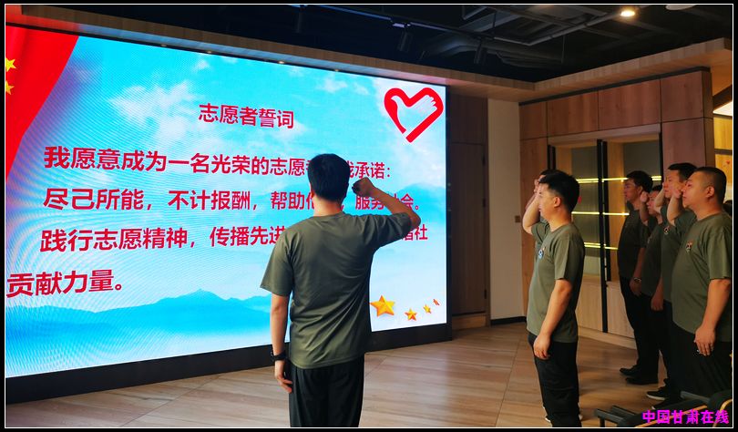 “我愿意成为一名光荣的志愿者。我承诺:尽己所能,不计报酬,帮助他人,服务社会......”2021年8月21日上午,10名退役军人志愿者和1名现役军人在曹队长的带领下宣誓正式加入兰州市城关区白银路街道甘家巷社区“甘甘”退役军人志愿服务队。