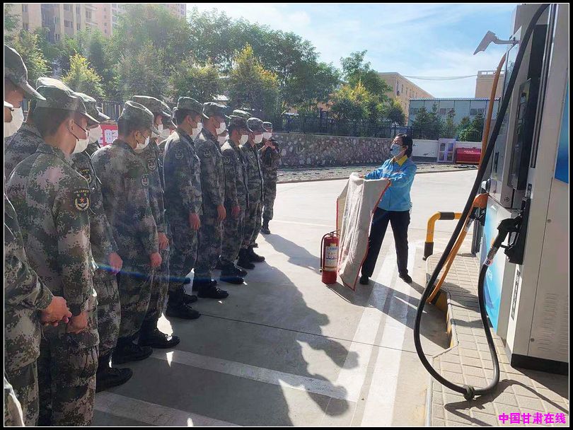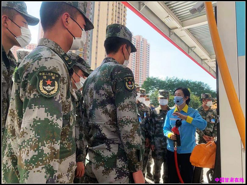 中国甘肃在线兰州讯 2021年9月16日,解放军陆军后勤保障部队指战员60余人列队迈着整齐的步伐走进中石油兰州建西西路加油站参观学习,与加油站员工开展军民互动交流活动。