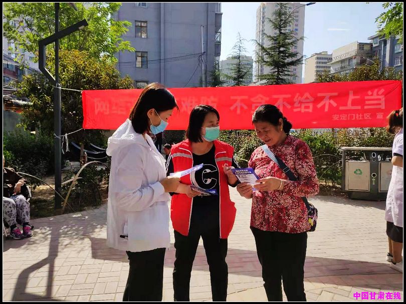 中国甘肃在线兰州讯 “网络购物便利多,谨慎支付准没错。兼职刷单小广告,本金提成拿不到。亲朋好友遇事急,转账汇款先联系。网络贷款风险高,验资缴费是圈套。天上不会掉馅饼,投资理财多留心。”为全力遏制电信网络诈骗高发势头,针对性开展点对点精准防范电诈宣传,全力构建全民反电诈格局,近日,白银路街道安定门社区开展了一系列“反电诈”宣传活动。