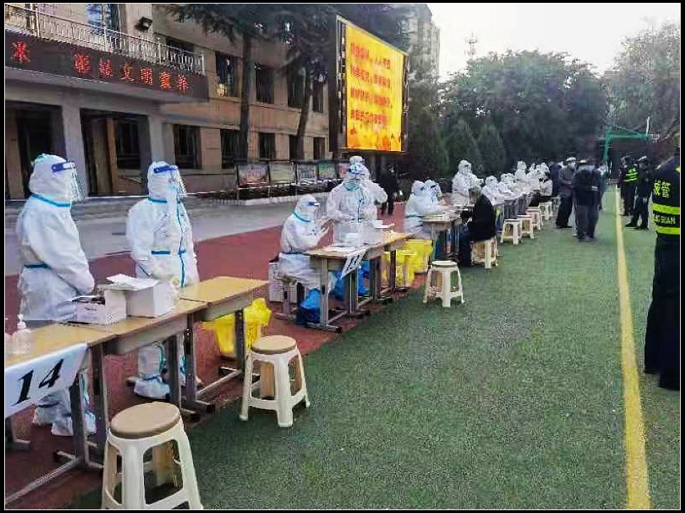为确保群众全面尽快做完核酸检测,21日,雁南街道又连夜在兰州市第四十六中学设立16个检测台,确保辖区每个检测点单队排队长度不超过100米,排队时间不超过30分钟。截止10月22日下午18:00共采集咽拭子样品56672份。