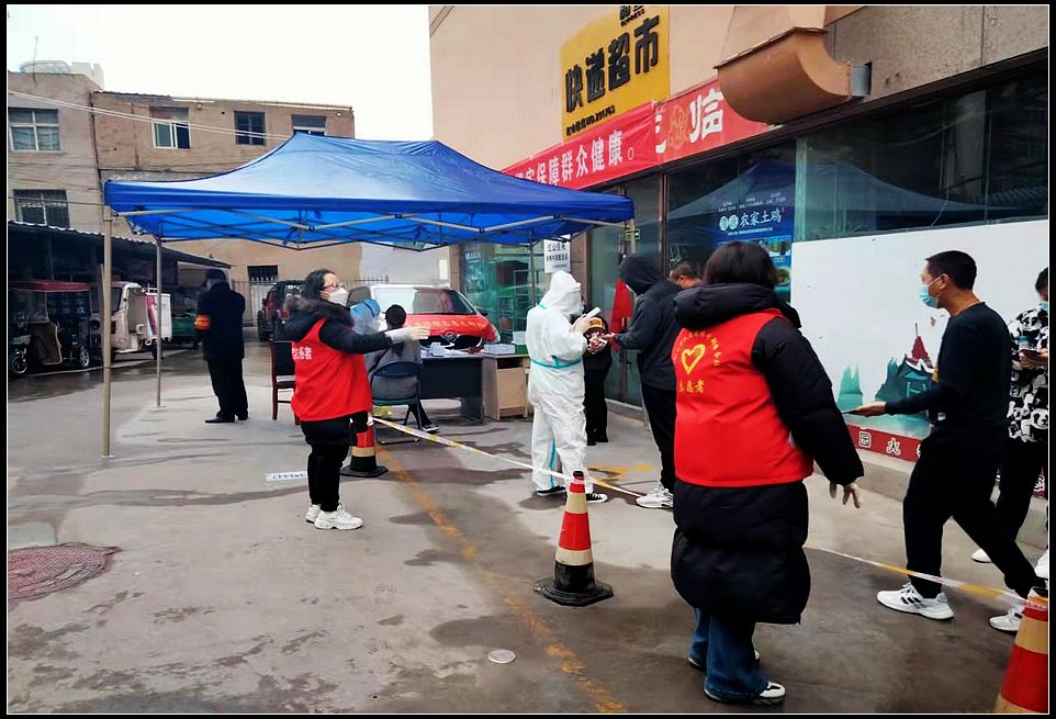 病毒无情,人间有爱。为了加强防控,面对严峻的疫情形式,身为榜样的志愿者们身着红色的志愿者马甲冒着严寒,默默无闻的奉献,他们有的来自居民群体有的来自党员干部......但此刻他们共同用专业热情的志愿服务精神筑起了防疫青春长城。在扩大核酸检测范围的工作中,志愿者们第一时间对接社区主动参与疫情防控,严格按规定布置场地,做好消杀,准备各项所需物资,合理安排居民群众排队,提醒居民们准备好手机,出示“健康码”,保持“一米线”,有序开展核酸检测。志愿者们积极发挥作用,引导居民排队检测、维持现场秩序,协助答疑解惑,安抚群众情绪,全力配合红二村社区检测点做好辅助性工作。在疫情防控的每一条战线,都有志愿者默默地守护。他们不约而同选择了舍小家为大家,只为同一个目标,打赢这场战“疫”!