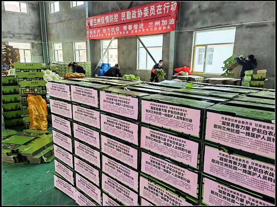 接到通知后,省青联委员、甘肃省经济动员心理危机干预服务保障大队、甘肃省心理咨询师学会防疫志愿者服务总队副总队长、甘肃青梭公益发展中心理事长韩杰荣立即在理事群里召开电话会议,依托在民勤县长期开展公益活动的群众基础,第一批蔬菜迅速被各家企业和合作社认领,有机芹菜、甜粟南瓜、白菜、土豆、洋葱,12.5吨物资分装成2000份,并协调太太乐兰州公司配套了2000份火锅底料等调味品,不到8个小时,4000份价植34万元的食品就准备就绪,他第一时间向省、市团委汇报,请求协调运输及通行事宜,省邮政管理局安排了中通快递民勤公司保障这批慰问品的运输。