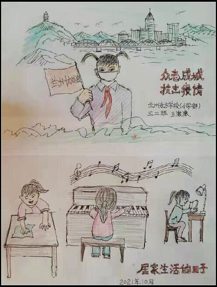中国甘肃在线安宁讯 翰墨抒写大众同心,丹青描绘抗疫力量。近日,安宁区各学校积极开展少先队员抗疫主题活动,在这个“宅”着的日子里,同学们通过书法、绘本、手抄报、视频等多种形式,描绘抗“疫”感人事迹,讴歌最美“逆行者”,为坚守一线的抗疫人员鼓劲,为“宅”在家中的人们加油。一份份传递真情的作品,带着孩子们最真诚的祝福,一扫这个城市上空的阴霾,给每一位默默坚守的市民心里注入了股股暖流。让我们一起欣赏孩子们的优秀作品吧。