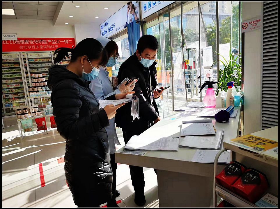 紧盯药品和医疗器械质量安全,监督药品零售单位暂停销售解热镇痛、镇咳、抗菌、抗病毒“四类”药品,对有发热、干咳、鼻塞、咽痛、乏力等症状的顾客,引导其前往就近的医院就诊。督促医药经营企业全力做好药品器械、防护设备、消杀灭菌等疫情防控物资的储备和供应保障工作,确保防护、消杀物资供应有序。