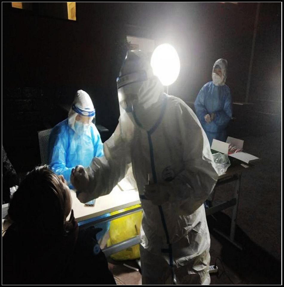 10月20日,再次紧急集结17人,于凌晨3点赴黄河家园开展核酸检测采样工作。