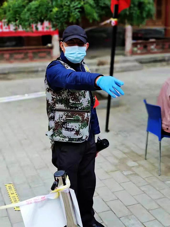 段宏斌,就是这支退役军人迷彩方队的典型代表。作为一个曾经参加对越自卫反击战的退役军人、功臣和党员,当新冠疫情来袭时,他主动去张掖路街道办事处请缨参战。既是指挥员,协调布局各个社区的人员力量,又是战斗员,测温、消毒、登记、搬运、值勤,一丝不苟。还是捐赠者,先后给街道捐赠矿泉水、饮品十四件,分发给各社区抗疫一线的志愿者。