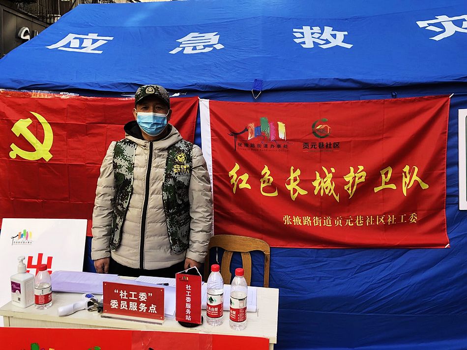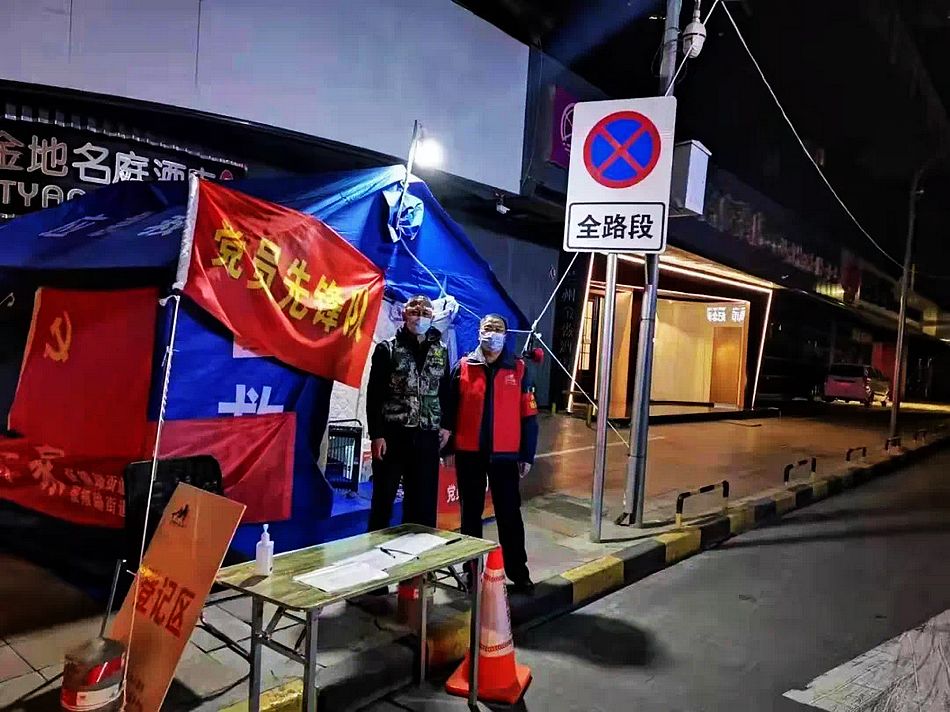 在山字石社区核酸检测点,笔者采访了正在这里巡查的张掖路街道退役军人服务站高海霞女士,她说:在抗疫的前沿阵地上,这一支迷彩方队,一个党员就是一面旗帜,一个岗位就是一个标杆,一个关口就是一个典范。是他们和无数个志愿者,把对党的忠诚、对祖国的热爱、对军队的倾情,对人民的大爱,书写在了祖国鲜红的大地上”……