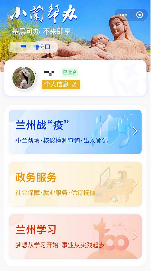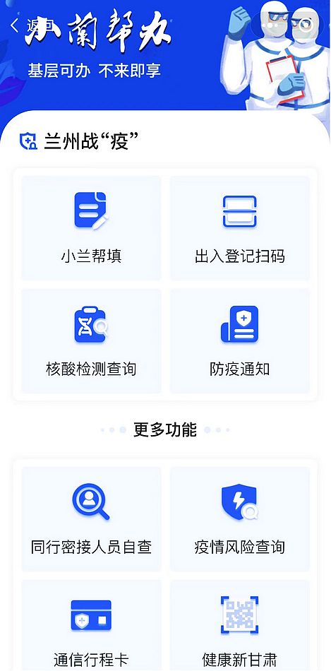 “小兰帮办”是兰州市利用微信小程序助力疫情防控的新办法,做到居民进出小区登记更加便捷,不再通过纸质化台账登记,从而减少多人使用纸笔交叉感染的风险。通过数据化平台记录居民出入卡口、小区次数,减缓卡口排队进出现象,也可以同步核酸检测结果、一键跳转健康码状态、获取最新疫情防控政策等信息。