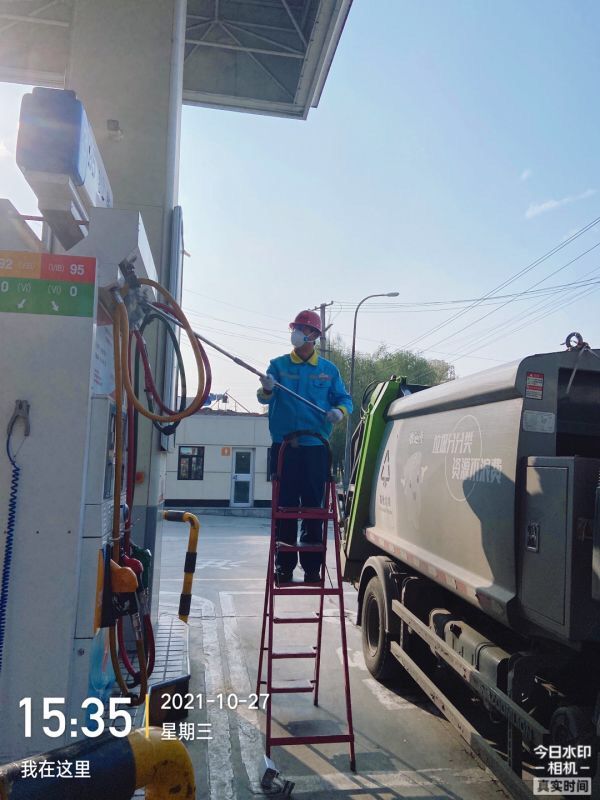 回到车里,看到包哥忙着去给加油机消毒了。