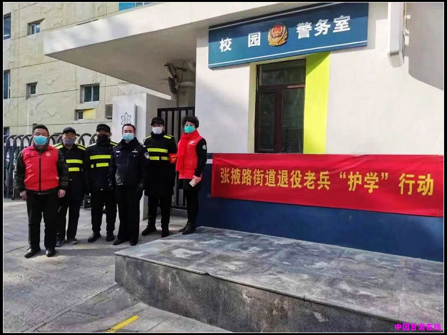 中国甘肃在线兰州讯(赵小春、王学明报道)2021年12月29日,天空碧蓝,暖阳融融。上午十一点二十分,兰州市城关区张掖路街道退役军人徐启生、杨新喜、张恒林,穿着退役军人标识的反光马夹,佩戴张掖路街道退役军人志愿者袖标,早早来到兰州市静宁路小学。学校警务室门口,悬挂着“退役军人志愿者“护学”行动的横幅标语。他们与社区志愿者、学校警务室民警、保安一起,拉开了张掖路街道呵护花朵安全行、退役军人在践行“护学”行动的序幕。