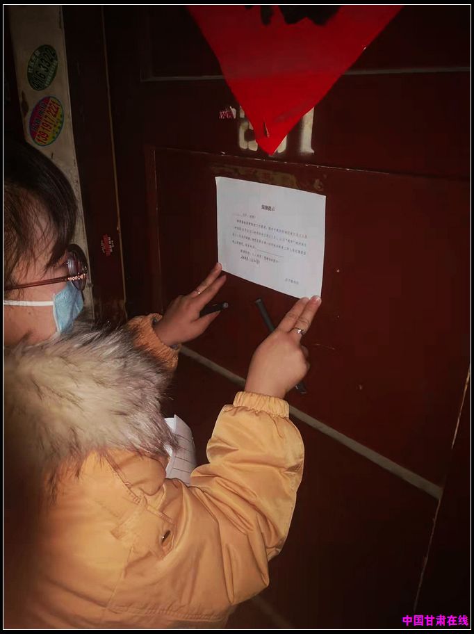 为了提高排摸工作的效率和精准度,社区抽丝剥茧分层落实。首先社区书记连夜组织楼院长微信群里发起“群接龙”,组织群内居民主动上报近一个月内有无西安旅居史,居民们积极配合,接龙井然有序的进行;其次,对于没有参加接龙的住户采取电话访问:“你好,我是正宁路社区的工作人员,请问12月以来,您和您家人有去过西安等中高风险地区吗?”周末社区办公室此起彼伏的重复着这句话,网格员们边排摸边记录详细地登记居民的信息。最后,针对剩余无法联络的居民采取上门入户方式。驻沉干部和社区志愿者穿梭其中,开展疫情防控“扫楼”行动,本着“不落一户、不落一人”的原则,挨家挨户进行摸排并对住户近期有无来兰返兰、是否接种疫苗等情况进行详细记录,对家中确实无人的,张贴温馨提示督促居民主动向社区报备。截至周日晚上,排摸工作基本覆盖全辖区楼院,并摸排出西安返兰人员3人,第一时间上报至街道联防联控小组。