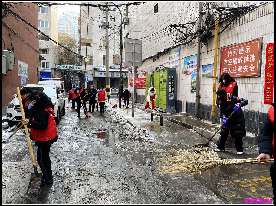 中国甘肃在线兰州讯(通讯员:柏茹)新年伊始,雪花飘然而至,一夜间兰州市银装素裹。2月7日,兰州市军队离退休干部服务站站领导联合贡元巷社区,积极组织志愿活动,在“社工委”的带领下,以雪为令,快速反应,30余名志愿者在贡元巷辖区背街小巷扫积雪、铲坚冰、保畅通,为居民铲出一条“安全路”,切实保障市民出行安全。