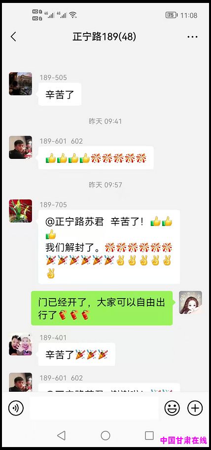 七天时间转眼过去,对于临时管控单元的居民来说,似乎有些许漫长,第七天的最后一次核酸检测完后,楼院群里的居民按奈不住焦急的心情,着急地询问楼院长解封时间。“各位居民,大家稍安勿躁,请大家将各自的核酸结果报告截屏发给我,汇总好所有资料,上报后获批我们就可以解封!”单元底册、居民核酸结果汇总、临时管控区域解封申请表、管控人员账表卡册,四样资料准备齐全并上报后,终于接到了解封的通知,楼院长第一时间就在群内发布了消息,瞬间,楼院群内欢呼雀跃,随之而来的是居民们对社区和楼院长连连感谢声和称赞声:“楼院长辛苦了,感谢社区”……看着这一连串的感谢,社区的工作人员心里充满了欣慰。虽然在这短短七天内,有辛苦,有误解,有劳累,有担忧,但是在此刻,这一切都化成了满心欢喜。因为隔离,反而拉近了社区和居民之间的关系,加深了社区和居民之间的感情。