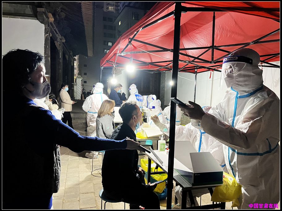 在正宁路社区,驻守干部们迅速转变角色、深入基层、冲锋在前、全心投入,协助核酸检测、走访巡查重点楼院场所、参与疫情防控宣传……疫情防控的每个岗位都有他们忙碌的身影。他们虚心向社区工作人员请教如何跟居民群众沟通,细心询问所在小区居民情况,用实际行动践行初心使命,切实担当作为,为疫情防控贡献自己的力量。“您好,请打开健康码,我来登记您的信息……”,两次全员核酸中,兰州市委党校讲师李刚同志都担任起扫码员的角色,他在核酸检测点细心负责的工作态度让人称赞。自从3月18日晚上的第一轮全员核酸开启,正宁路社区四名驻守干部接到了“扫码员”这个工作任务,他们认真学习,火速上阵,通过一个小时的培训就熟练掌握了核酸检测扫码登记的全过程,他们穿上防护服,在核酸检测台一站就是四、五个小时,克服防护服给身体带来的各种不适,全力完成好每一位居民的信息登记工作。
