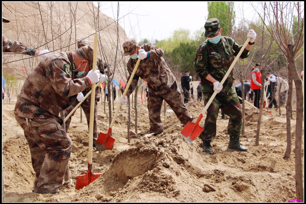 中国甘肃在线安宁讯 四月的兰州草木萌发,春意盎然。兰州市安宁区委常委、人武部上校部长杨云江、上校政治委员王荣淇带领人武部全体人员参加安宁区党政军领导机关义务植树活动,以实际行动为全区增添新绿。
