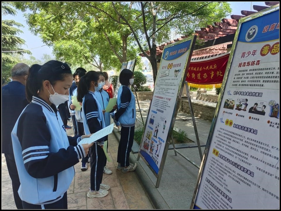 雁南街道天庆嘉园社区联合街道社会综合治理中心走进天庆实验中学组织开展“禁毒反诈进校园 齐心筑牢防护墙”宣传活动