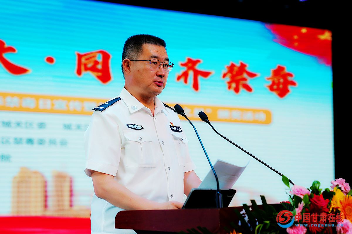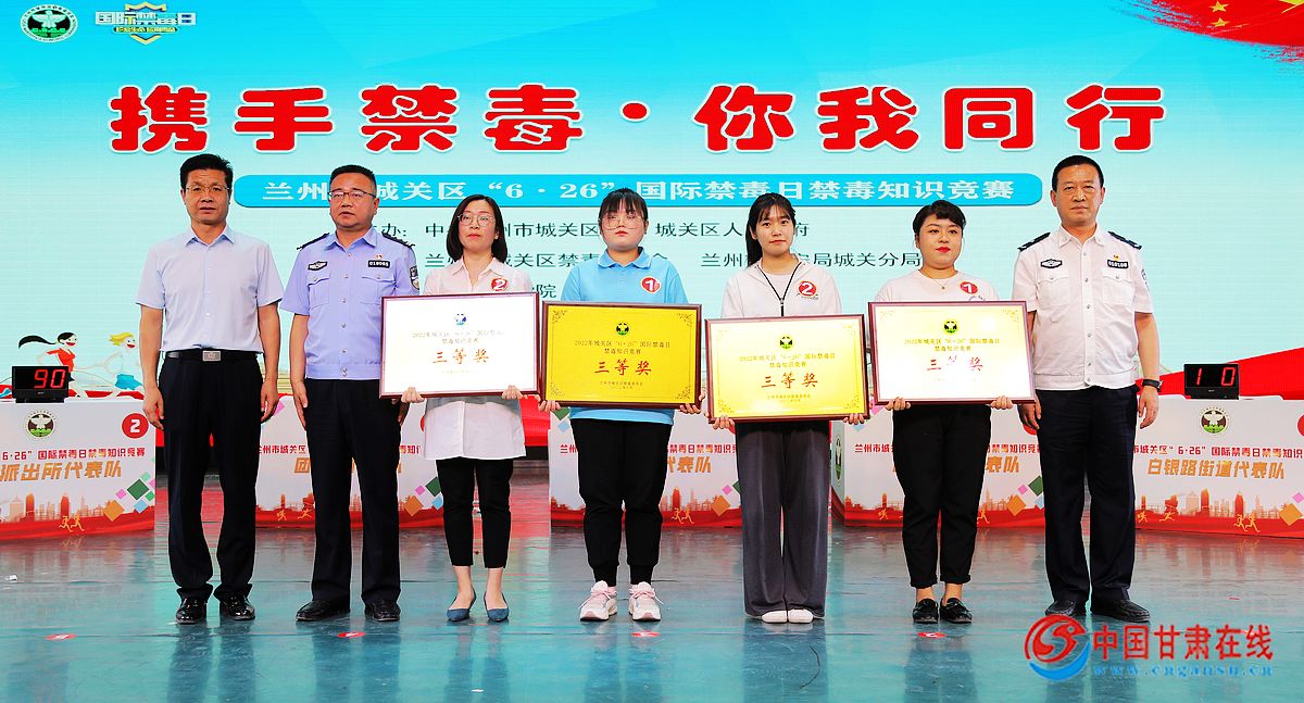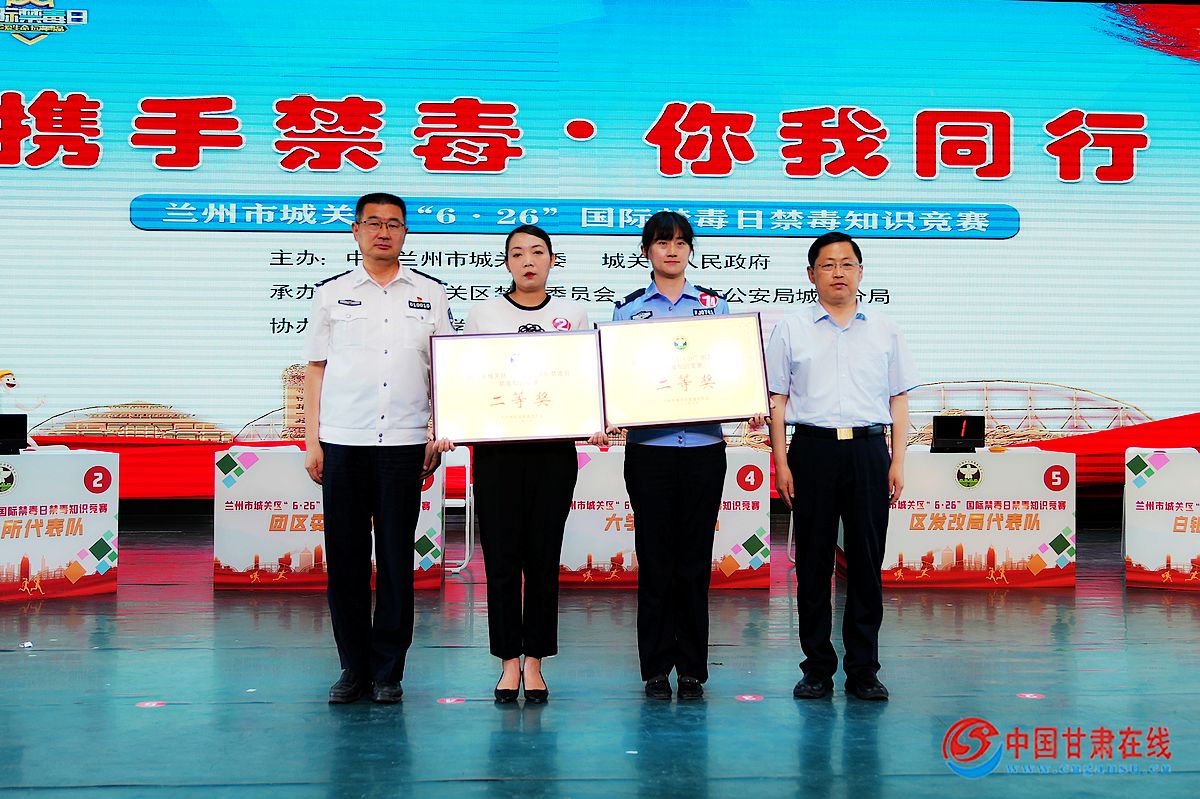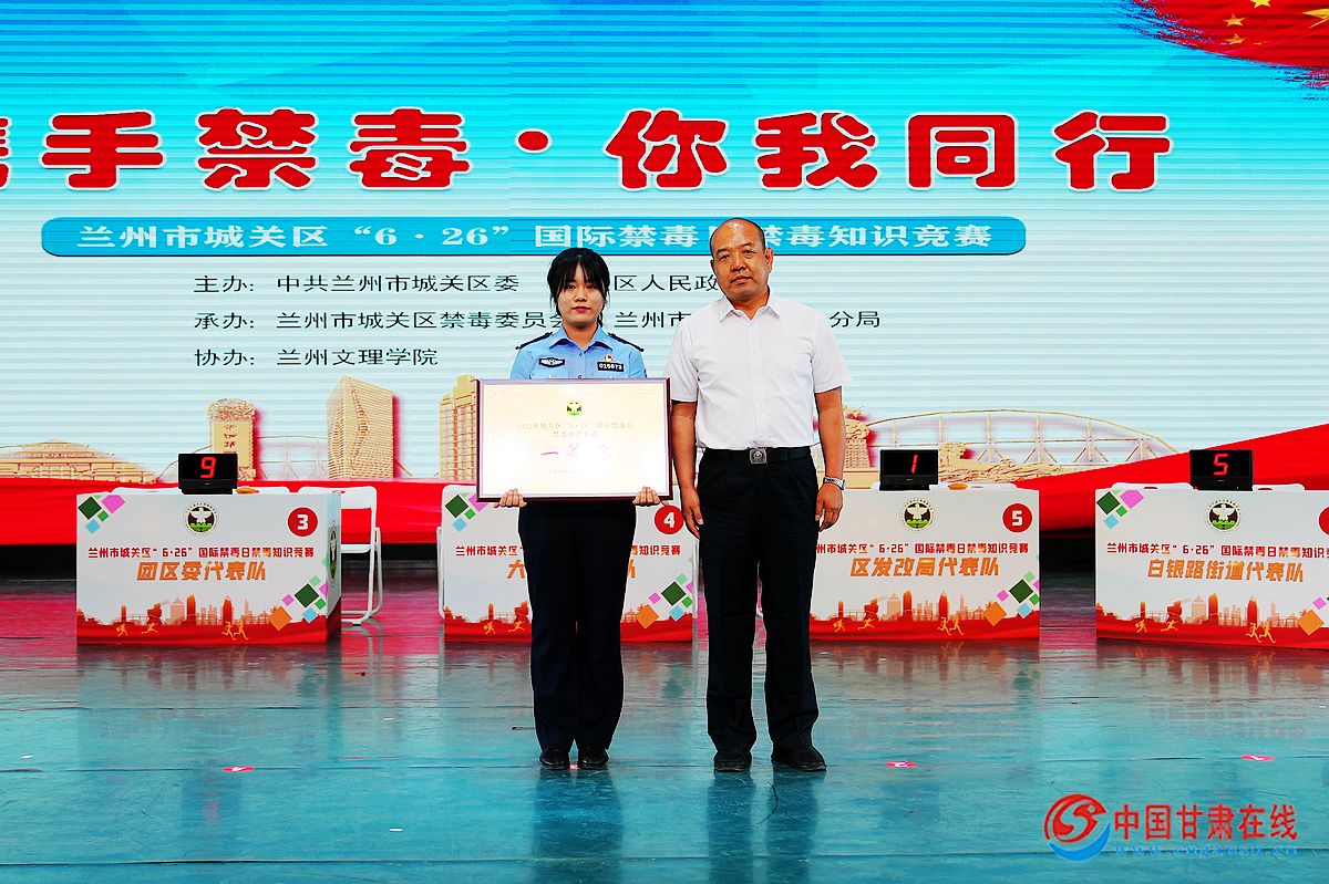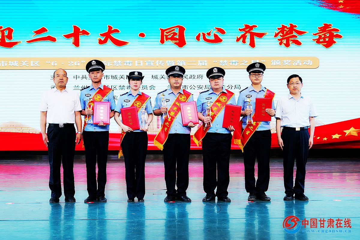 省禁毒办专职副主任高晓东,城关区委常委、政法委书记、区禁毒委副主任张长霖,市公安局副局长、区政府副区长、区禁毒委副主任、城关公安分局局长康岸桥,市禁毒办主任、市公安局禁毒处处长李有伟,区禁毒委委员、城关公安分局副局长王斌德,兰州文理学院相关负责同志出席活动,并为荣获“缉毒执法之星”“禁吸戒毒之星”“预防教育之星”荣誉称号的第二届“城关禁毒之星”先进人物和禁毒知识竞赛获奖团队颁奖。