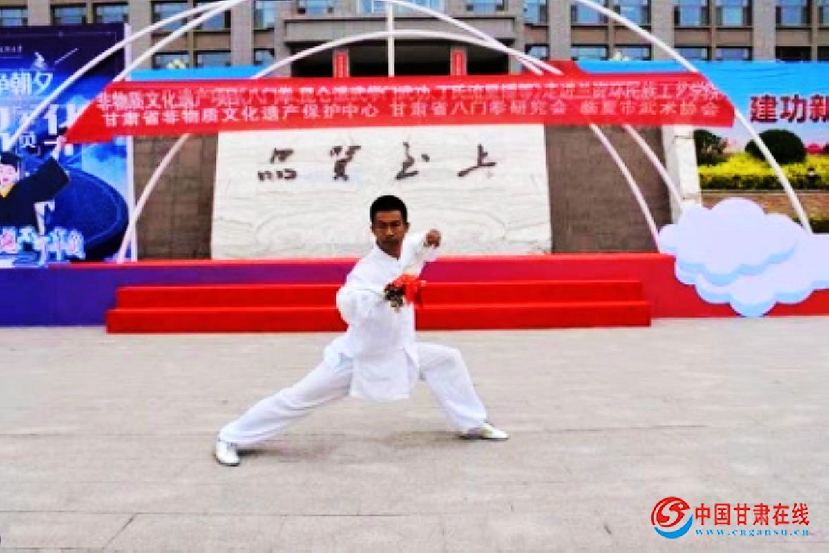 这次进校园活动的非物质文化遗产项目有《兰州八门拳》、《昆仑派武学门武功》、《丁氏流星锤》,表演了精彩绝伦的“丁氏流星锤”、“兰州八门拳”、“昆仑派武学门武功玄武剑”,展示了惊险刺激的“飞针穿玻璃”绝技与刀术、拳术等。(马晓春)